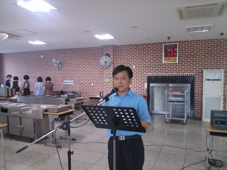 간식으로 수박과 떡, 음료수가 저녁 식사로 삼계탕이 제공되었습니다. 행사는 교장 선생님의 격려사, 8반 서정주 어머니의 격려사, 각 학반 반장들의 다짐, 식사 순으로 진행되었습니다. 다음은 교장 선생님과 서정주 어머니의 격려사 내용입니다.
